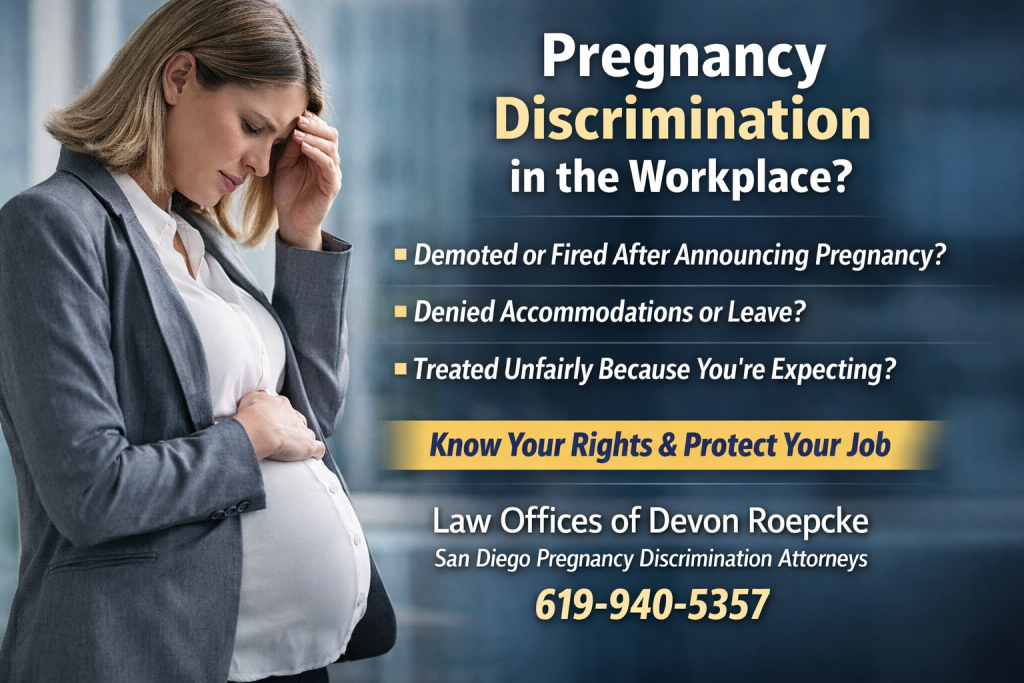 Pregnancy should be one of the most exciting times in a person’s life not one filled with fear of losing your job or being treated unfairly. Unfortunately, pregnancy discrimination in the workplace remains far too common across California. At the Law Offices of Devon Roepcke, our mission is to protect the rights of employees who face discrimination, retaliation, or wrongful termination due to pregnancy or maternity leave.